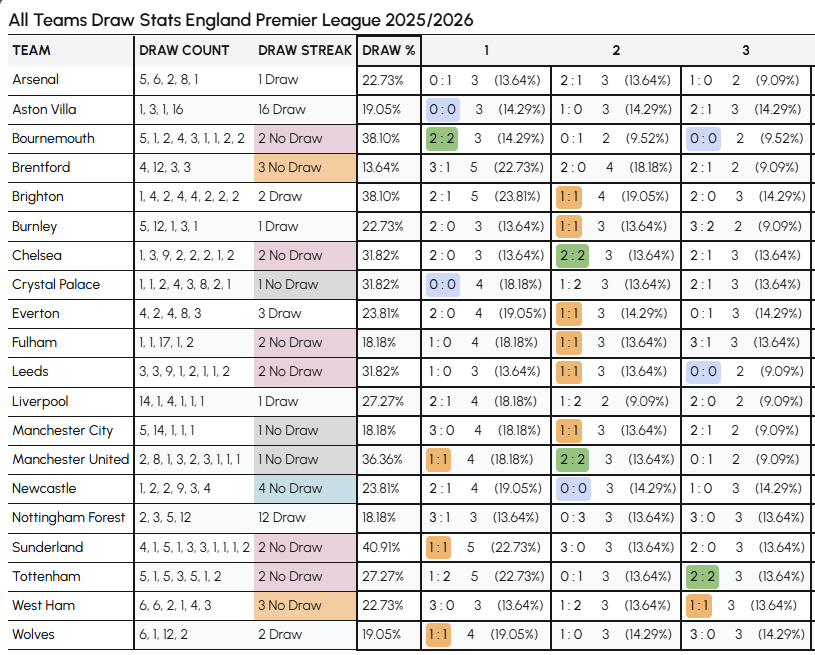 Discover how often teams draw, identify streaks, and analyze draw probabilities with precision